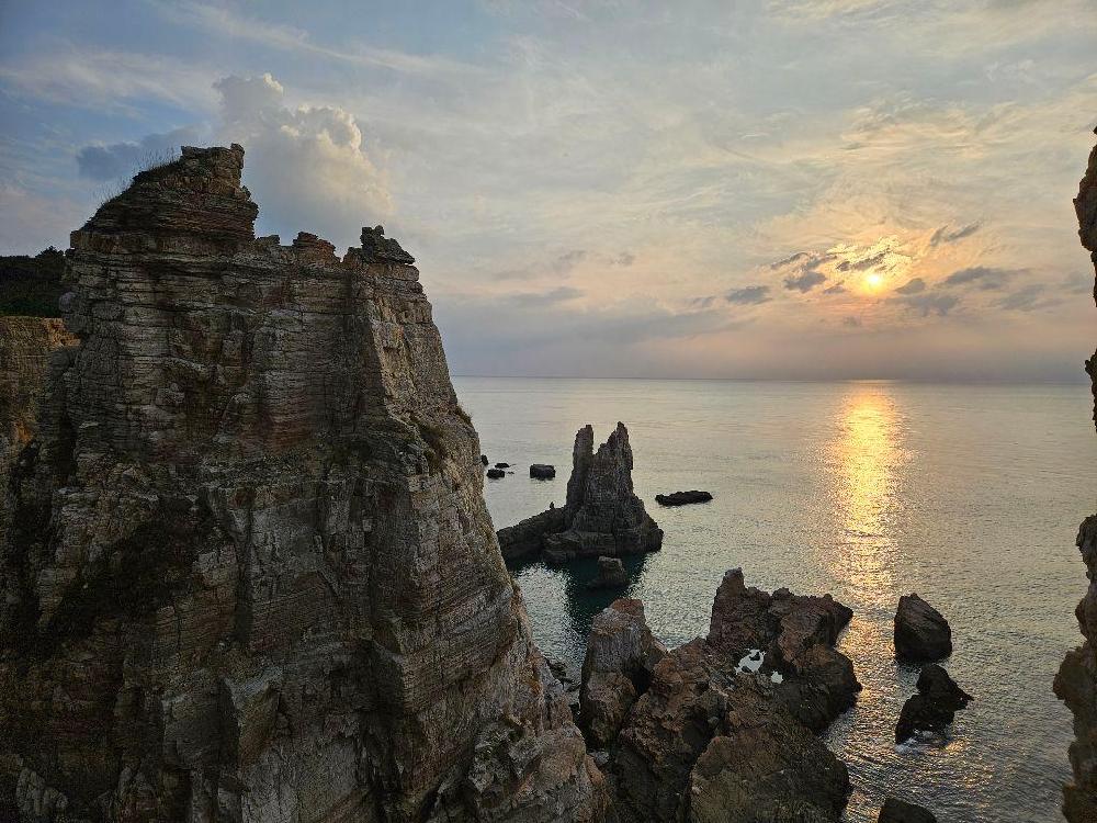 두무진은 해안선을 따라 펼쳐진 웅장한 해안 절벽과 기암괴석이 장관을 이루는 곳입니다. 깎아지른 듯한 절벽과 기묘한 모양의 바위들이 펼쳐져 마치 거대한 조각 작품을 보는 듯한 착각을 불러일으킵니다. 특히, '선대암'은 신선이 내려와 앉았다는 전설이 전해지는 바위로, 두무진의 대표적인 명소입니다.
